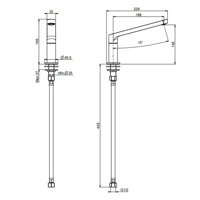 Длина излива, см