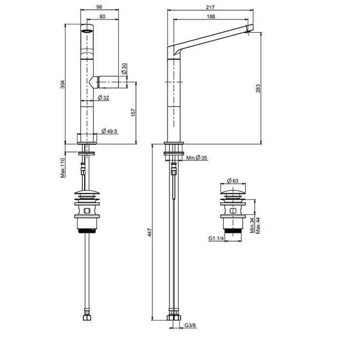 Высота излива, см