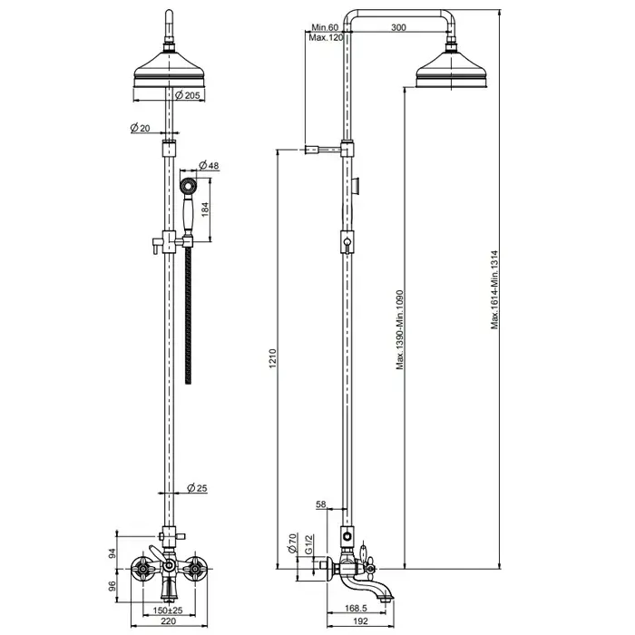 Carlo Frattini Olivia Душевая стойка, в ком-те: смеситель, стойка, шланг, ручной душ, верхняя лейка, цвет: золото