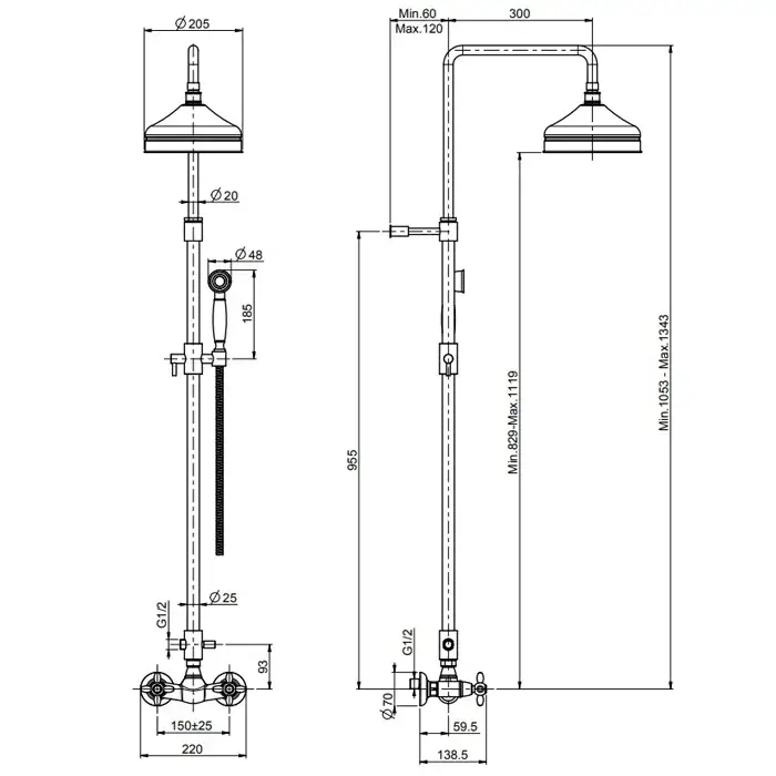 Carlo Frattini Olivia Душевая стойка, в ком-те: смеситель, стойка, шланг, ручной душ, верхняя лейка, цвет: золото