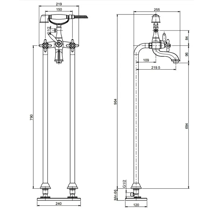 Fima Carlo Frattini Olivia Смеситель для ванны напольный с душевым комп., излив 70 см, цвет: gold F5004/4OR