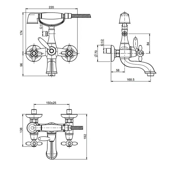 Fima Carlo Frattini Olivia Смеситель для ванны, настенный, с ручным душем, цвет: золото