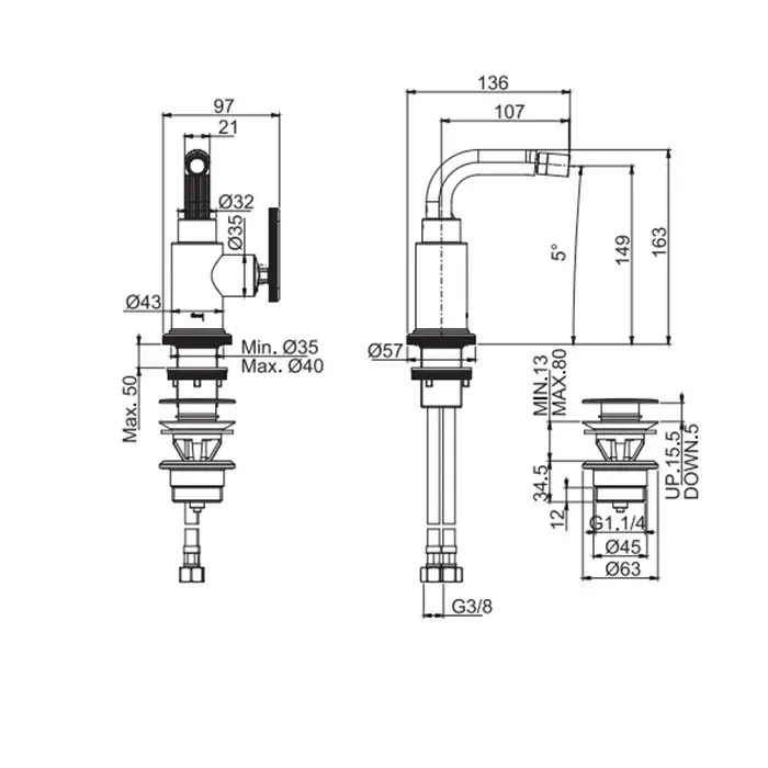 Fima Carlo Frattini Park Lane Смеситель для биде, с донным клапаном, излив 10,7 см, цвет: chrome F1322CR