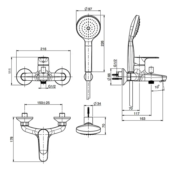 Fima Carlo Frattini Serie 22 Смеситель для ванны, настенный, цвет: черный матовый