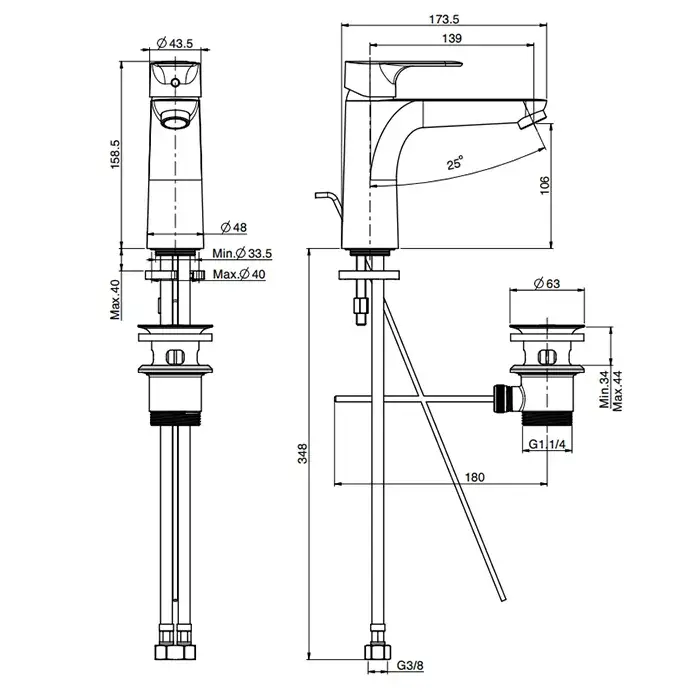 Высота излива, см