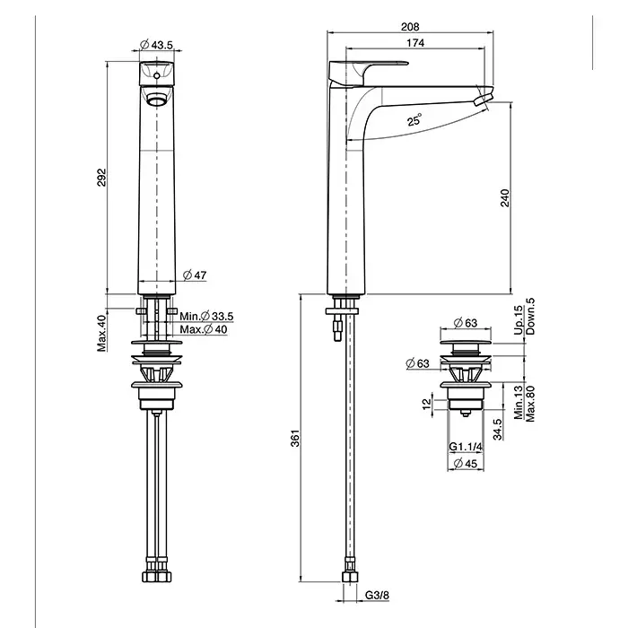 Fima Carlo Frattini Serie 22 Смеситель для раковины, на 1 отв., с донным клапаном, цвет: черный матовый