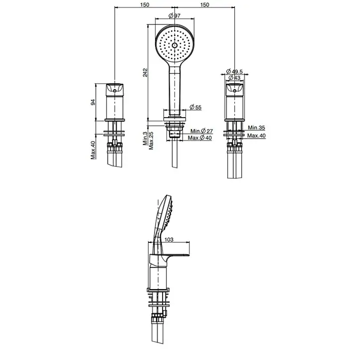 Fima Carlo Frattini Serie 22 Смеситель на борт ванны с ручным душем, без излива, цвет: chrome F3844/1NCR