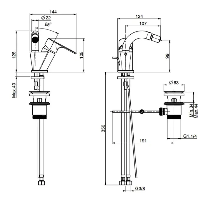 Fima Carlo Frattini Serie 4 Смеситель для биде, с донным клапаном, излив 10,7 см, цвет: chrome F3842CR.2