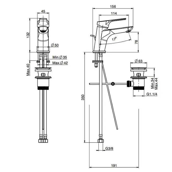 Высота излива, см