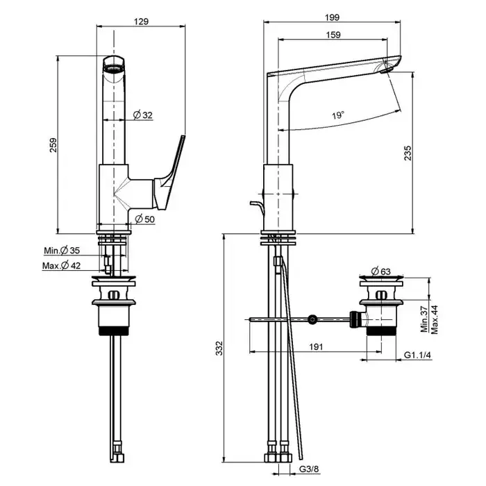 Fima Carlo Frattini Serie 4 Смеситель для раковину, на 1 отв., высокий, h: 29.5см., с донным клапаном, цвет: хром