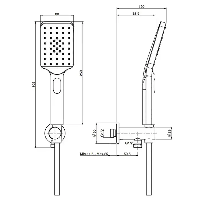 Fima Carlo Frattini Set doccia Душевой гарнитур, настенный держатель, с ручным душем и шлангом 150см., цвет: черный матовый