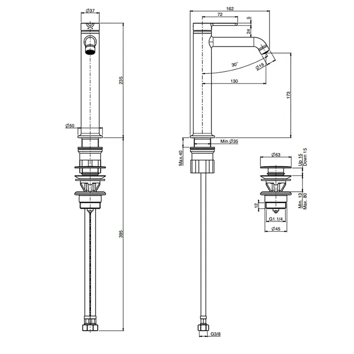Высота излива, см
