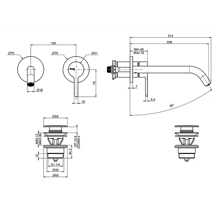 Fima Carlo Frattini Snap Смеситель для раковины встраиваемый, излив 20 см, цвет: black matt F3121WLX8NS