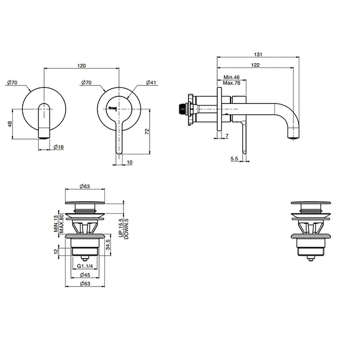 Fima Carlo Frattini Snap Смеситель для раковины встраиваемый, излив 12 см, цвет: chrome F3121WSX9CR