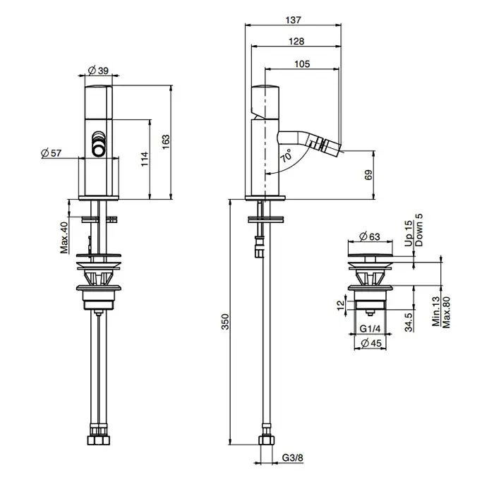 Carlo Frattini So Смеситель для биде двухкомандный, на 1 отверстие, с донным клапаном click-clack, цвет: хром