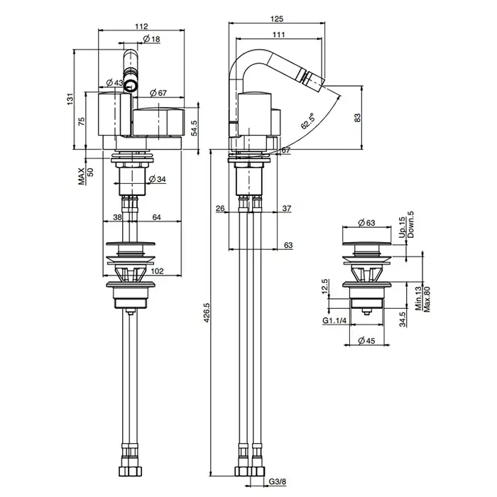 Carlo Frattini So Смеситель для биде, на 1 отверстие, с донным клапаном click-clack, цвет: хром