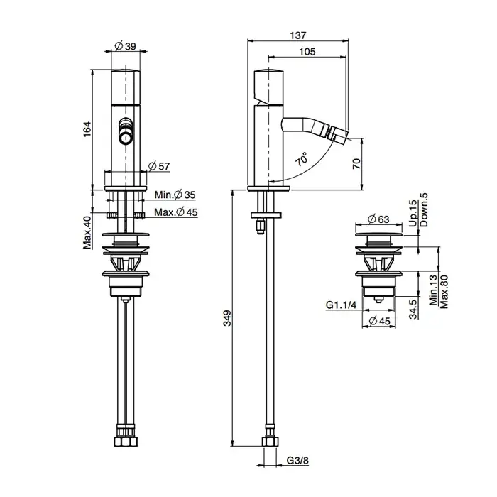 Carlo Frattini So Смеситель для биде, на 1 отверстие, с донным клапаном click-clack, цвет: хром