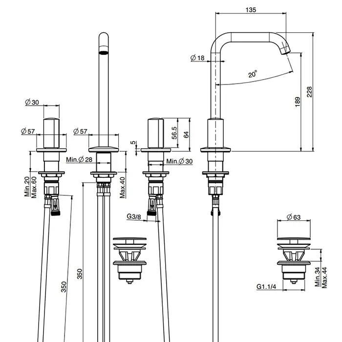 Carlo Frattini So Смеситель для раковины, высота 329мм, на 3 отверстия, вращающийся излив Ø 18мм, донный клапан click-clack, цвет: хром