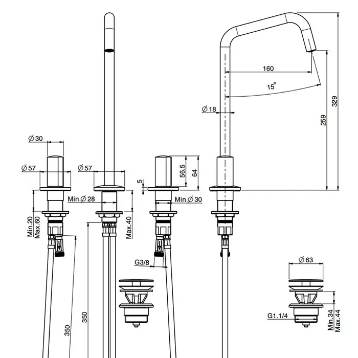 Carlo Frattini So Смеситель для раковины, высота 329мм, на 3 отверстия, вращающийся излив Ø 18мм, донный клапан click-clack, цвет: хром