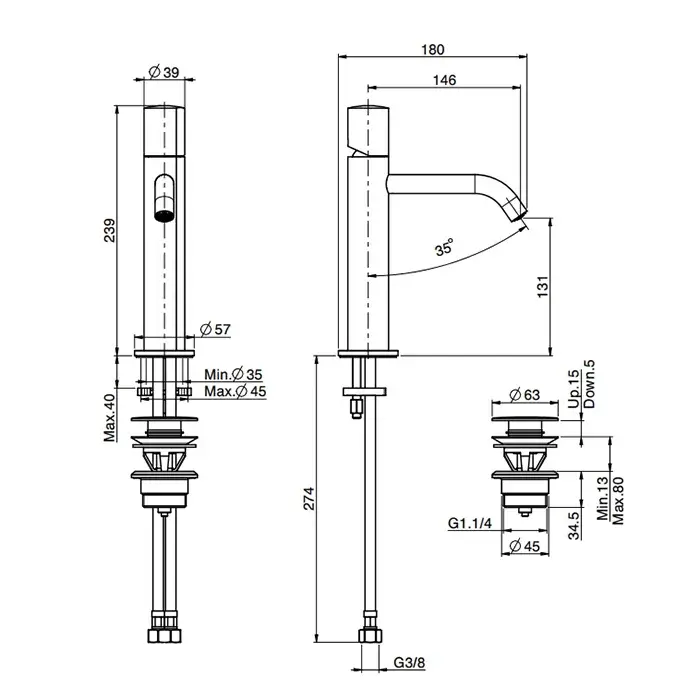 Carlo Frattini So Смеситель для раковины, высота 329мм, на 3 отверстия, вращающийся излив Ø 18мм, донный клапан click-clack, цвет: хром