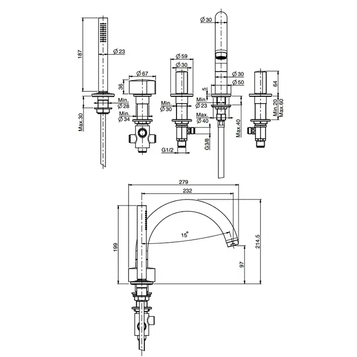 Carlo Frattini So Смеситель на борт ванны двойной, с изливом, с душевым комплектом, цвет: хром