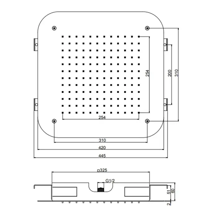 Размер верхнего душа, см
