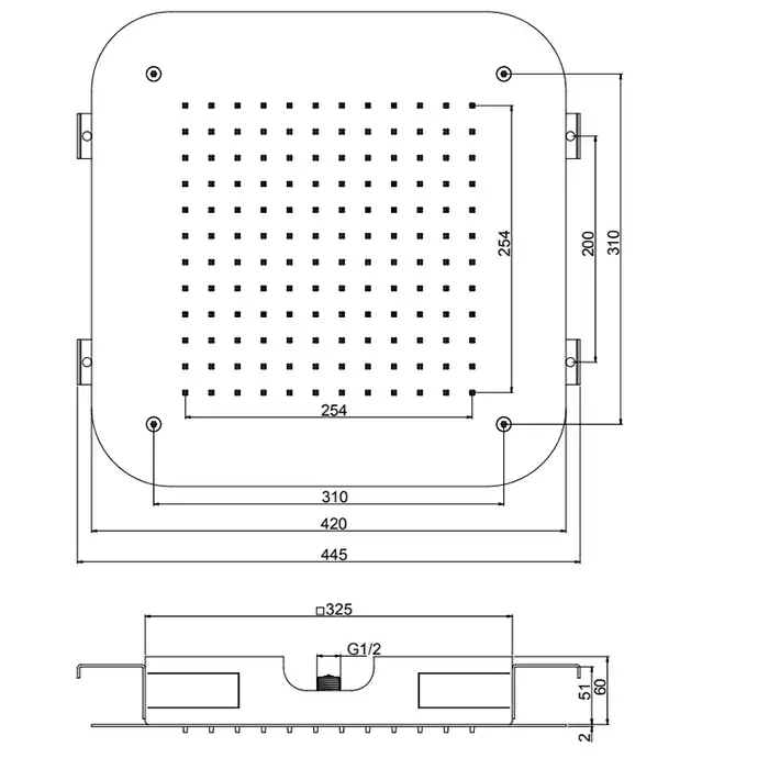 Размер верхнего душа, см