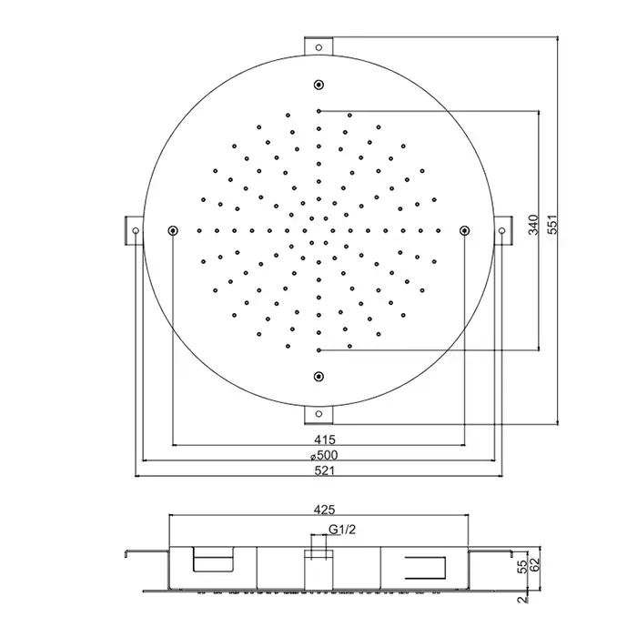 Размер верхнего душа, см