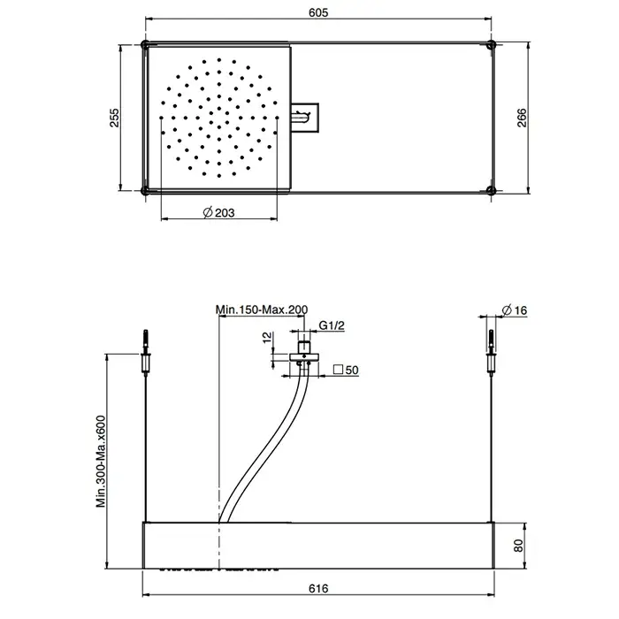 Fima Carlo Frattini Soffioni Верхний душ 49х40см., потолочный 30см., Cloud, цвет: черный матовый/нержавеющая сталь