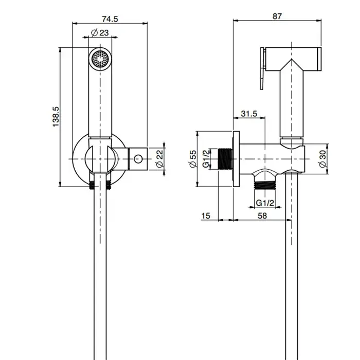 Fima Carlo Frattini Collettività Гигиенический душ, настенный, со шлангом 120см., цвет: черный матовый
