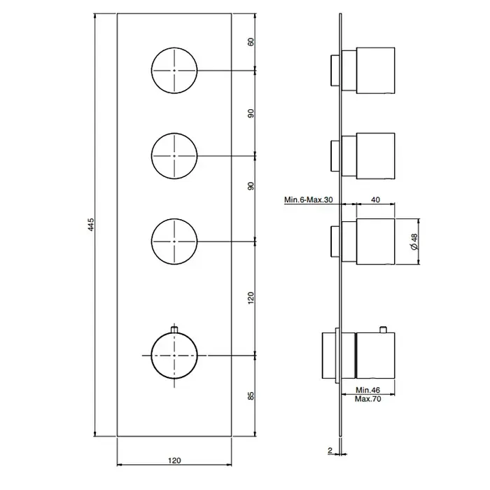 Fima Carlo Frattini Spillo Steel Смеситель для душа, 3 запорных вентиля, цвет нержавейка F3089X3INOX