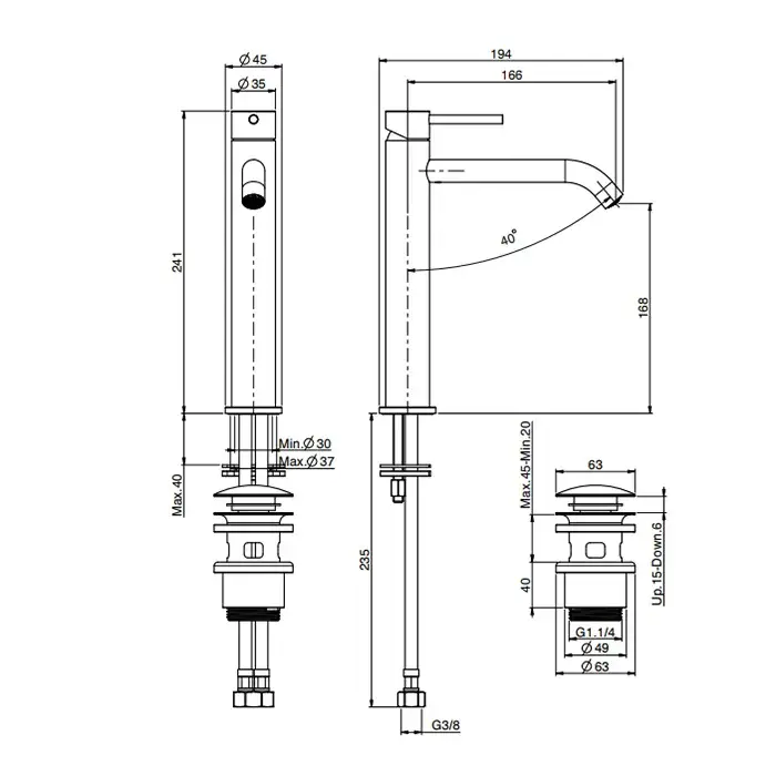 Carlo Frattini Spillo Steel Смеситель для раковины высокий, высота 241 мм., на 1 отверстие, с донным клапаном click-clack, цвет: INOX