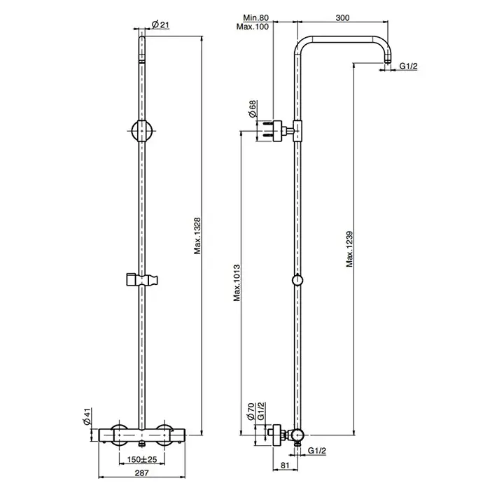 Термостат, Регулируемая по высоте штанга