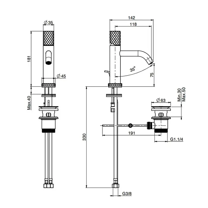 Fima Carlo Frattini Spillo Tech Cмеситель для раковины, на 2 отв., с донным клапаном, цвет: хром