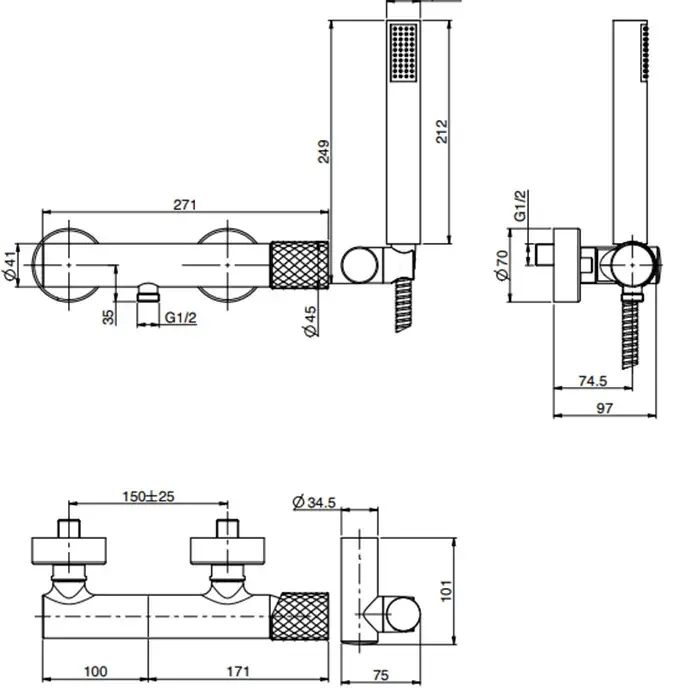 Fima Carlo Frattini Spillo Tech Смеситель для душа, с душевым комплектом, цвет: хром F3035XCR
