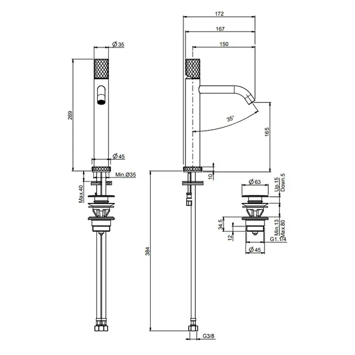 Fima Carlo Frattini Spillo Tech Cмеситель для раковины, на 2 отв., с донным клапаном, цвет: хром