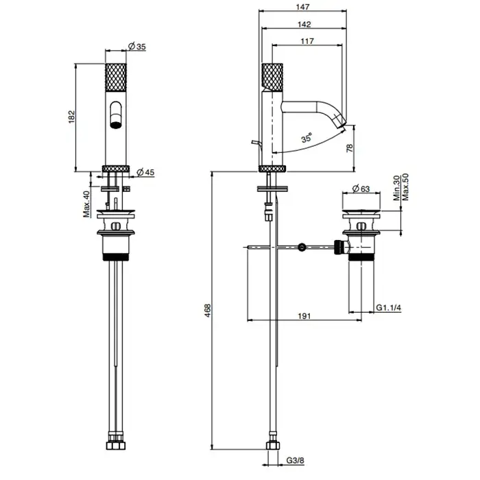 Fima Carlo Frattini Spillo Tech Cмеситель для раковины, на 2 отв., с донным клапаном, цвет: хром