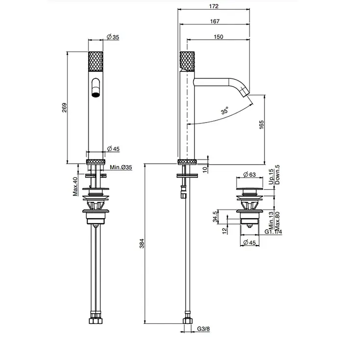 Высота излива, см