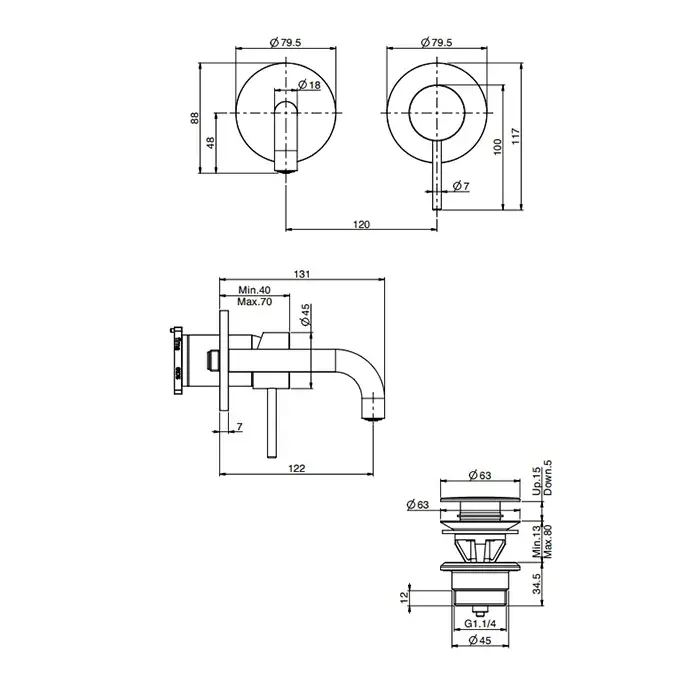 Fima Carlo Frattini Spillo Tech Cмеситель для раковины, на 2 отв., с донным клапаном, цвет: хром
