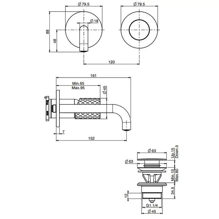 Fima Carlo Frattini Spillo Tech Cмеситель для раковины, на 2 отв., с донным клапаном, цвет: хром