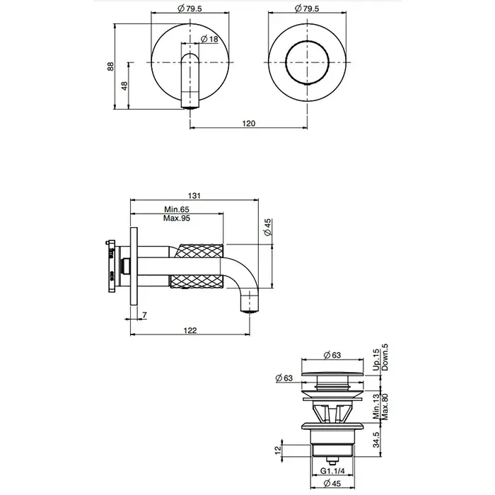 Fima Carlo Frattini Spillo Tech Cмеситель для раковины, на 2 отв., с донным клапаном, цвет: хром