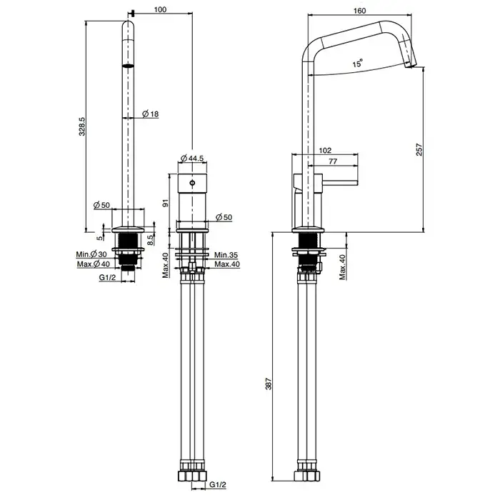 Fima Carlo Frattini Spillo Tech Смеситель для раковины высокий, 2 отверстия с д/к, цвет: black matt F3271TNDXNS