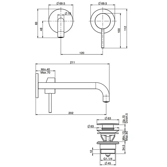 Fima Carlo Frattini Spillo Up Смеситель для раковины, на 1 отв., с донным клапаном, цвет: хром