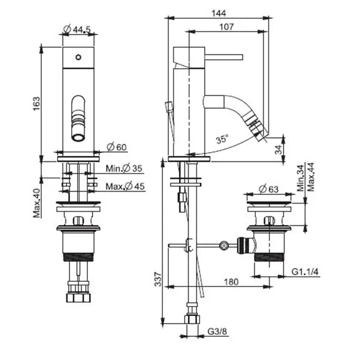 Carlo Frattini Spillo-up Смеситель для биде, ручка "XS", с донным клапаном , цвет: хром