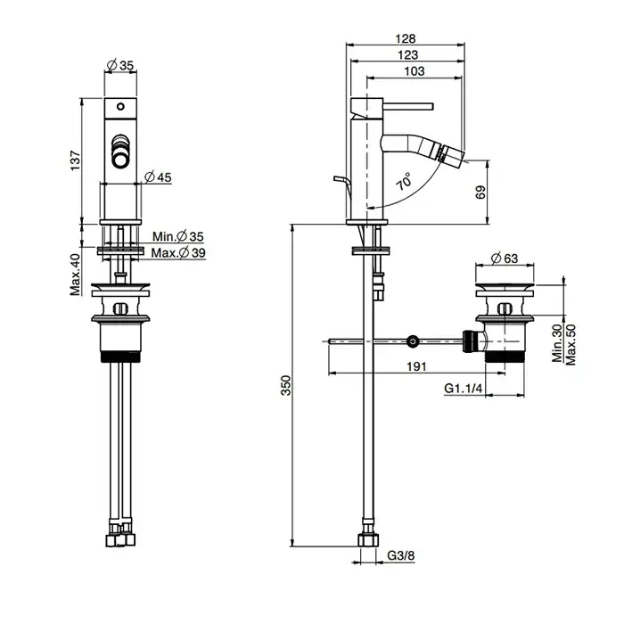 Fima Carlo Frattini Spillo Up Смеситель для биде, на 1 отв., с донным клапаном, цвет: хром