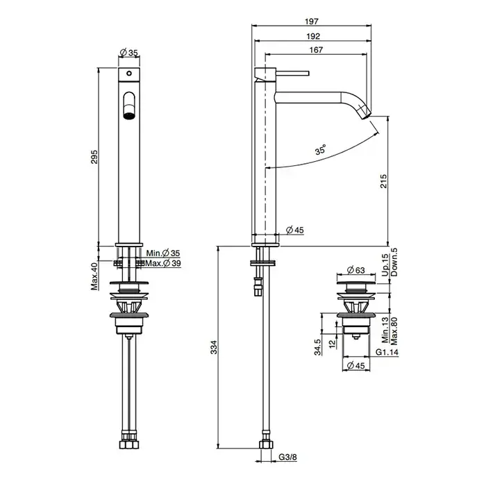 Высота излива, см