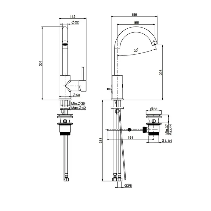 Fima Carlo Frattini Spillo Up Смеситель для раковины на 1 отв, с вращ. излив, цвет: хром F3041CR