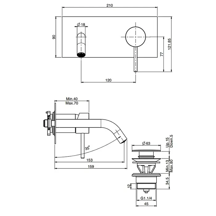 Fima Carlo Frattini Spillo Up Смеситель для раковины встраиваемый, излив 15 см, цвет: black matt F3051WX9NS