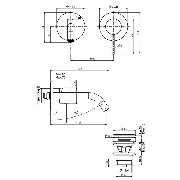 Fima Carlo Frattini Spillo Up Смеситель для раковины встраиваемый, излив 16 см, цвет: gold F3051WX8OR