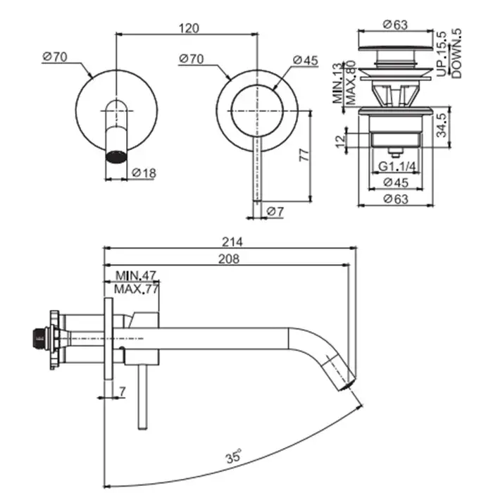 Fima Carlo Frattini Spillo Up Смеситель для раковины, на 1 отв., с донным клапаном, цвет: хром